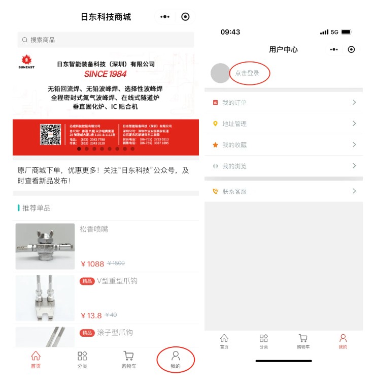 通過日東科技公眾號進入商城