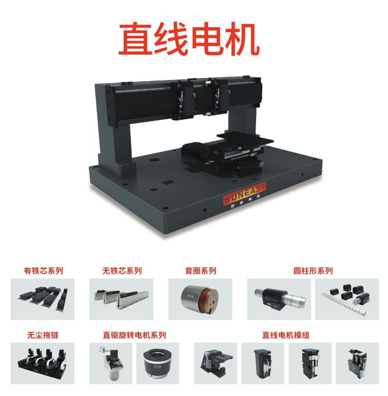 日東科技自主研發(fā)的直線電機(jī)產(chǎn)品系列,集高精度(100納米重復(fù)定位精度)、高響應(yīng)速度、高穩(wěn)定性及可靠性等優(yōu)點(diǎn),廣泛應(yīng)用于各行業(yè)精密場(chǎng)合,如視覺(jué)檢測(cè)、光學(xué)校準(zhǔn)對(duì)位、激光加工、工業(yè)機(jī)器人、精密機(jī)床等。產(chǎn)品采用光柵尺或磁柵等無(wú)接觸位置編碼器精準(zhǔn)定位,可實(shí)現(xiàn)單軸、多軸聯(lián)動(dòng),龍門同步等快速靈活的驅(qū)動(dòng)控制,維護(hù)方便,使用壽命長(zhǎng),同時(shí)緊湊的模塊化設(shè)計(jì)節(jié)省了安裝空間,易于擴(kuò)展。