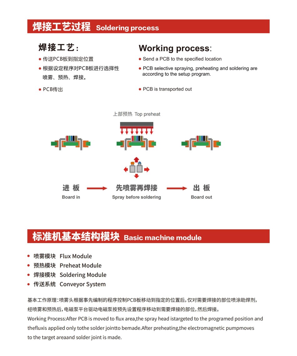 標配噴霧、預熱和焊接單元,可以在較小的機器空間內完成整個焊接工藝。