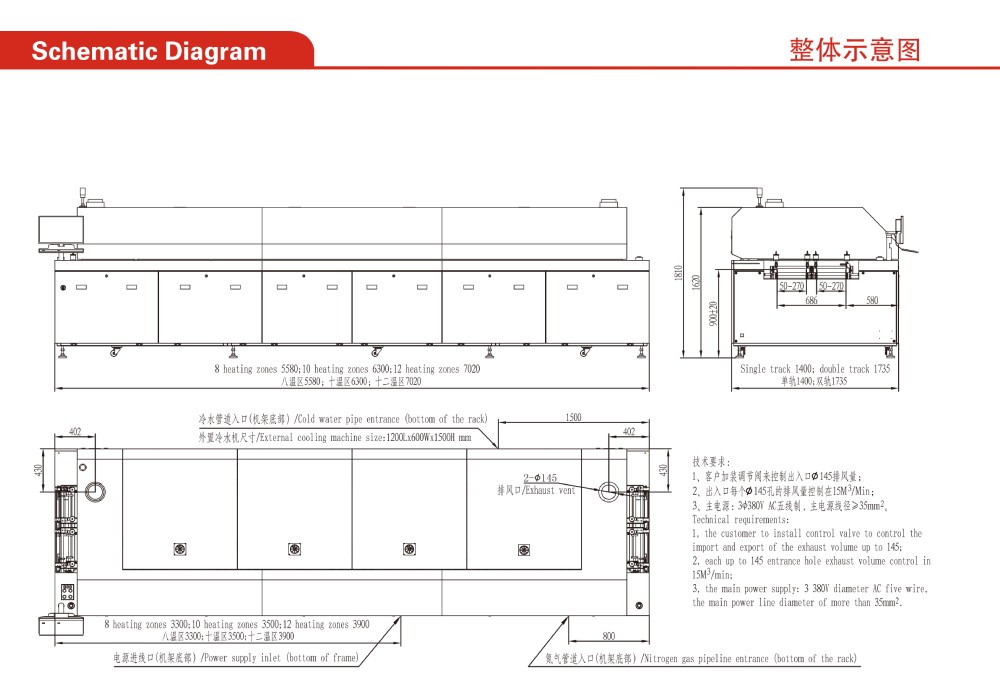 | 加熱區長度 | 3120mm | 3870mm | 4635mm | 3120mm | 3870mm | 4635mm |