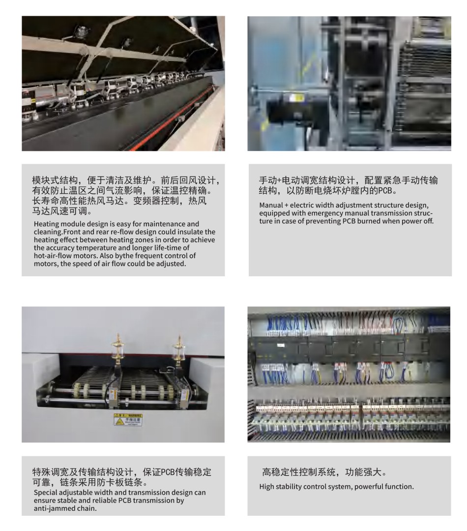 采用進(jìn)口PLC程序控制器, 溫度控制及曲線重復(fù)精度高;